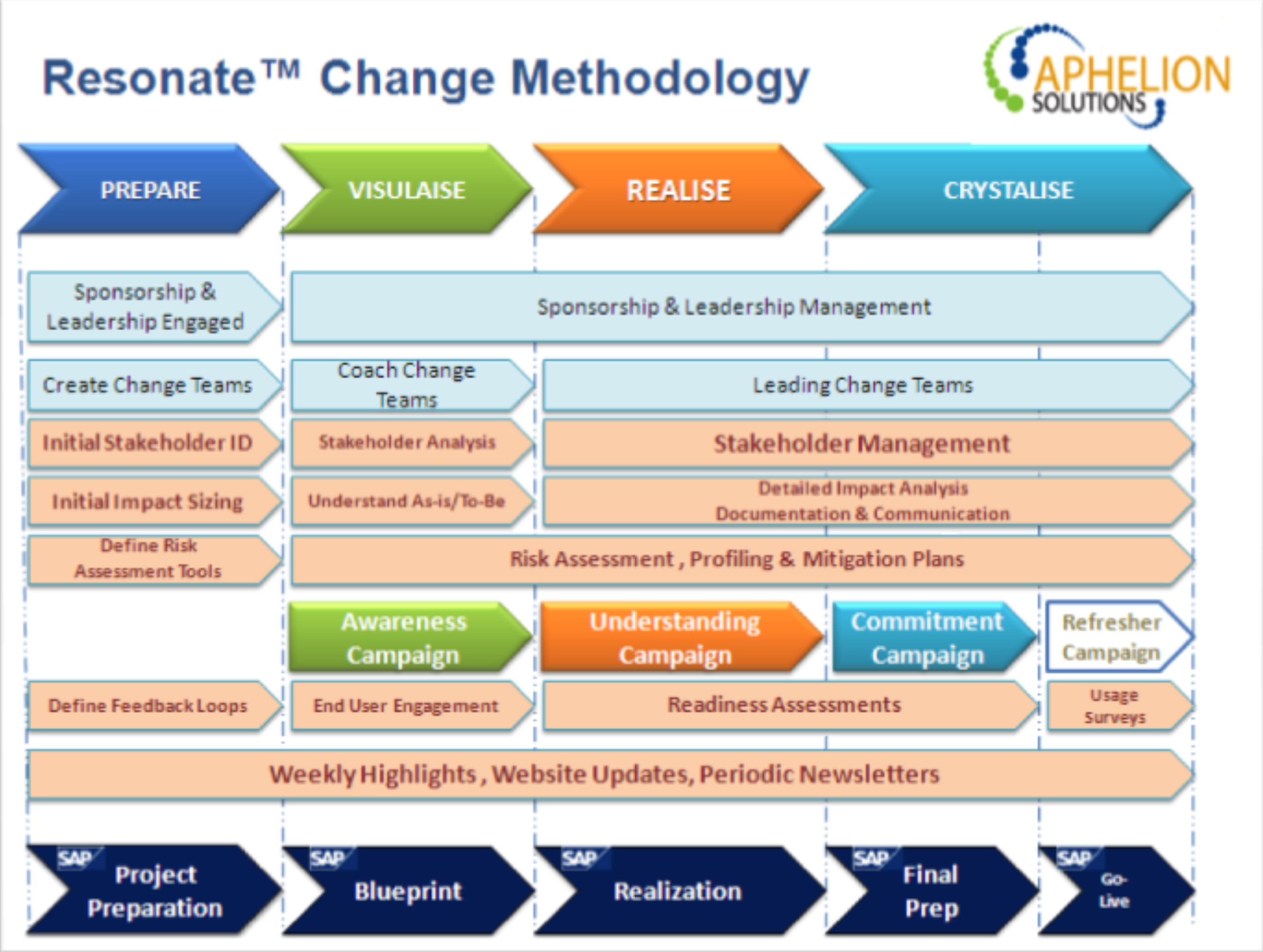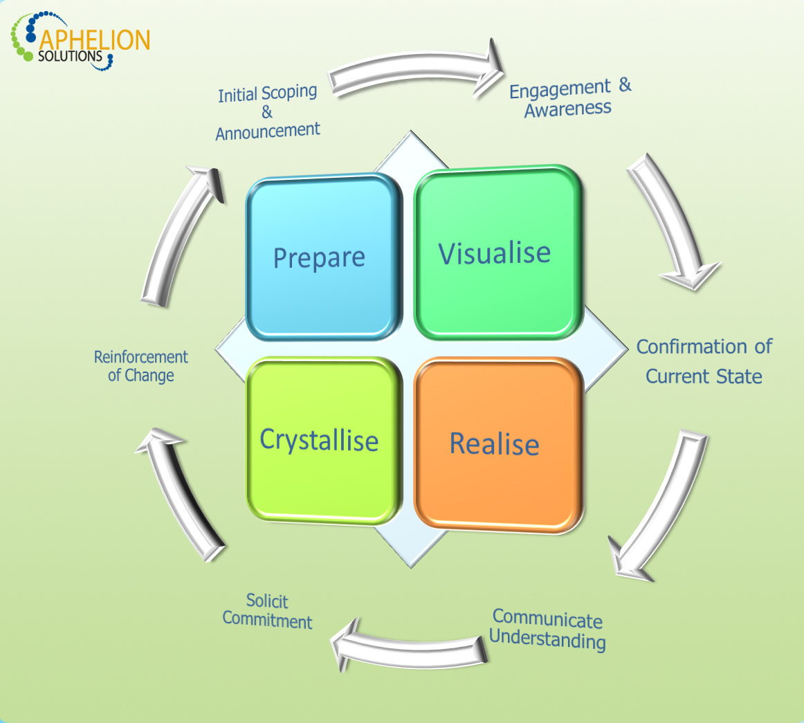 Aphelion Resonate ™ methodology provides guidance on how to support organisational change management on any process or technology project.